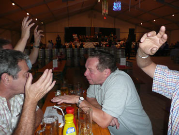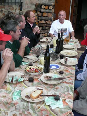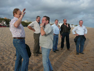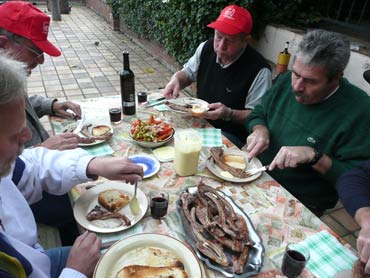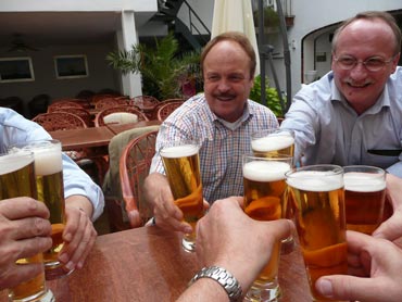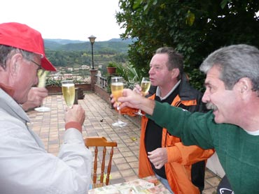 Der Flieger ging von Baden-Baden Airport nach Girona in kanpp 1 1/2 Stunden Flugzeit und nach einer guten Landung holte uns Gregori vom Flughafen ab. Die Begrüßung war sehr herzlich und wir alle freuten uns Gregori zu sehen. Nach einem Begrüßungsbier zogen wir in unsere schönen Doppelzimmer ein. Danach war es einfach nur schön, egal ob wir im Oktoberfestzelt waren, an den verschiedenen Theken unseren Mann standen, am Strand lagen und gebadet haben, spazieren gingen, auf der Finca Lammfleisch (mit viel Riojawein) gegessen haben, Tennis gespielt haben, Billardkugel gestoßen haben oder einfach nur diskutiert haben etc., es hatte jedem Freude gebracht! Man konnte seinen Alltag vergessen und gleichzeitig seinen Aku für neue Aufgaben aufladen! An dieser Stelle möchten wir uns alle sehr herzlich bei Gregori für seine überaus große Gastfreundschaft und Herzlichkeit bedanken!