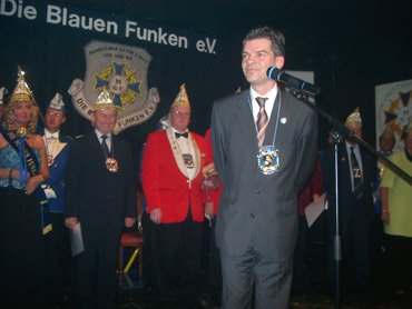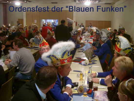 Es war ein frühfasnachtlicher Höhepunkt der "Blauen Funken"! Der Veranstaltungsort war im Gemeindesaal St. Elisabeth in Mannheim/Gartenstadt. Der 1. Vorsitzende Jandewerth-Mitschke gleichzeitig Präsident und Kommandant führte gekonnt das Ordensfest. Die Comtesse Maria I. regiert zum 2ten Mal und das fanden alle toll! Auch die Mitglieder des Königlichen Blau-Weißen Reiterkorps aus Eupen in Belgien. Sie sind extra mit ihrem Vizekommandant Dany Haag über 300 Kilometer gefahren, um dabei zu sein. Viele Ehrungen und Freundschaftsbeweise gabe es an diesem Abend auf und unterhalb der Bühne. Auch einige Präsidenten von den Mannheimer-Fasnachtsvereine sowie der Präsident der KKM Georg Wolf gaben sich die Ehre und freuten sich auf den tollen Orden. Hübsche Lieblichkeiten waren ebenso anwesend und verkündigten ihr Motto gekonnt. Leckeres Essen und schmackhaftes Dom-Kölsch rundeten den gelungenen Abend ab.