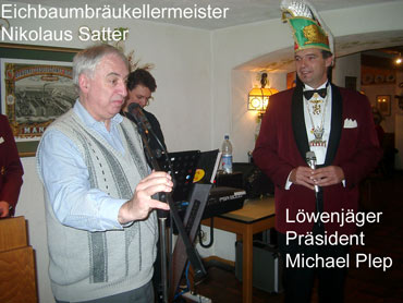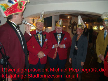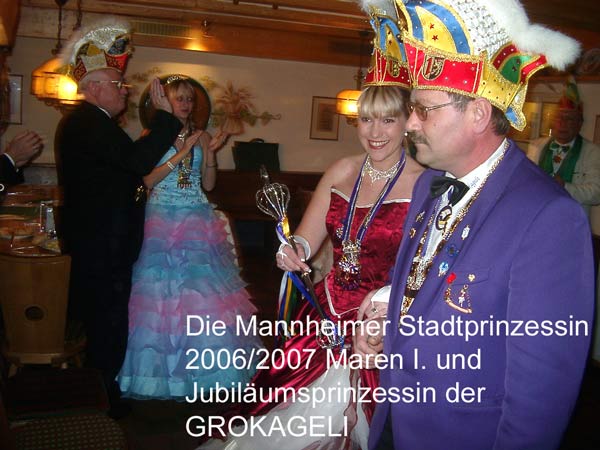 Der Präsident der Löwenjäger Michael Plep begrüßte alle Narren zum Ordensfest. Der sehr gut gelungene Löwenjager-Orden wurde gekonnt präsentiert und überreicht. Viele Lieblichkeiten waren mit ihren Präsidenten gekommen und übergaben ihr Orden. Sämtliche Prinzessinen waren eine Augenweide und sie fühlten sich sichtlich wohl. Dann kam die Mannheimer-Stadtprinzessin 2006/2007 Maren I. und Jubiläumsprinzessin der GROKAGELI mit Gerhard Hick 1.Vors. und Präsident in den Bräukeller. Die Narren huldigten der Stadtprinzessien Maren I. mit 3x Ahoi! Mit Musik von der Orgel war das Ordensfest kurzweilig und interessant. Michael Plep verabschiedete dann die Narren und diese gingen dann gut gelaunt nach Hause.