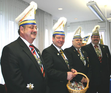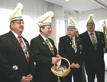 Viele Lieblichkeiten mit den Begleitern kamen. Auch die Mannheimer-Stadtprinzessin 2006/2007 Maren I. und Jubiläumsprinzessin der GROKAGELI mit Gerhard Hick 1.Vors. und Präsident sowie der ganze Hofstaat gaben sich die Ehre. Ein klasse Orden gab es von den Pilwe und leckere Speisen wurden gereicht. Gerald Niefer Vizepräsident + 2. Vorsitzender bekam ein lustiges Gastgeschenk überreicht. Eine Perücke und Schürze zum "Schaffe" für große Aufgaben! Interessante Gespräche wurden auch geführt und Freundschaften gepflegt. Vielen Dank für den gelungenen Vormittag!