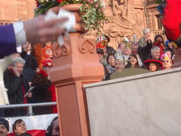 Bei super tollem Sonnenhimmel ist der 55. Jubi-Umzug in der Neckarstadt gestartet. Nicht nur die aktiven Narren waren klasse drauf, sondern auch die knapp 350000 Zuschauern auf der Straße. Der Lindwurm schlängelte sich durch die Narrenschar von "hiwwe un driwwe"! Lustig ging es auf den Motivwagen von den Vereinen zu. Entsprechend wurden sehr viele Gutsel und verschiedene andere brauchbare Wurfgeschosse unter das närrische Volk geworfen. Der absolut wichtigste Tag von unserem Prinzenpaar Maren I. und Stefan II. hoch auf dem neuen KKM-Wagen. Sie genossen jeden Meter der Zugstrecke dies konnten alle Narren hautnah miterleben. Auch die Ehrengäste auf der Tribüne vor dem Rosengarten und auf der Terrasse vom Maritim-Hotel. Am Mannheimer Schloss angekommen waren alle außer Puste und gleichzeitig voller Freude von diesem Erlebnis an diesem super Tag!