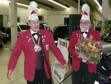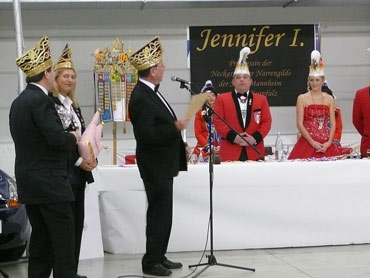 Am 19.11.2007 pünktlich um 19:11 Uhr hat die Neckarstädter Narrengilde e.V. zu der Prinzessinnenaudienz eingeladen. Die Veranstaltung fand in dem großzügem Verkaufsraum vom Autohaus Ford Kohlhoff statt. Der NNG Präsident Michael Bost und der 1.Vorsitzender Jürgen Eichin sowie die Lieblichkeit Jennifer I. begrüßten die gesamten angereisten Narren. Alle waren von dem Scharm und der Ausstrahlung von Jennifer I. Prinzessin der NNG und der Stadt Mannheim begeistert. Hohe närrische Persönlichkeiten, wie Günter Hauck Präsident der Vereinigung Badisch-Pfälzischer Karnevalvereine und Fasnachtsvereine von Mannheim, Ludwigshafen und Frankreich huldigten der Prinzessin. Sie sprachen Gruß- und Dankesworte und übergaben Jennifer I. schöne und nützliche Präsente. Das leckere Buffet war klasse angerichtet und üppig eingedeckt. Jeder Fasnachter konnte sich nicht nur satt essen, sondern wurde mit wohlschmeckenden Getränken verwöhnt. Es war eine klasse und gelungene Audienz wie es auch die Bilder im Anschluß zeigen.