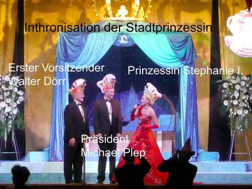 Die Prinzessin Stephanie I. Jubiläumsprinzessin der Löwenjäger und gleichzeitig die Mannheimer Stadtprinzessin wurde im Kulturhaus in Mannheim Käfertal inthronisiert! Der Festsaal war festlich dekoriert und sehr viele Persönlichkeiten von Politik, Wirtschaft und Kultur konnte eine strahlende Stephanie I. bewundern. Nun kann die Fasnacht richtig beginnen, nur...... ihr Prinz fehlt noch!!! Die Lieblichkeit Stephanie I. muss noch bis zum kommenden Samstag, den 17.01.2009 warten. Beim "Weißen Ball" im Mannheimer Rosengarten bekommt sie ihren Prinz und die komplette "Kurpfalz" wird jubilieren!!! Wir freuen uns auf die Inthronisation des Mannheimer Prinzen veranstaltet von der großen Karnevalsgesellschaft Feuerio!