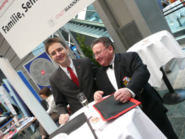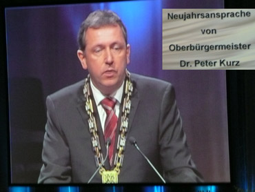Die zweite Neujahrsansprache von Oberbürgermeister Dr. Peter Kurz im Kongresszentrum Rosengarten, in der guten Stube von Mannheim! Der Schulden konnten im Haushaltsjahr 2008 um 25 Mio. Euro abgebaut werden und mehr Rücklagen gebildet werden, als zuerst geplant. Gute Aussichten für das neue Jahr 2009! Es geht voran mit Mannheim bei Wirtschaft und Kultur! Im Rosengarten haben sich viele kulturelle Einrichtungen, Schulen, Fördervereine, Institutionen und Unternehen etc. in allen Ebenen vom Rosengarten präsentiert! Die Mannheimer zeigten großes Interesse an den Ständen. Auch an den Getränken- und Speiseständen war das Gedränge groß!