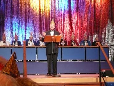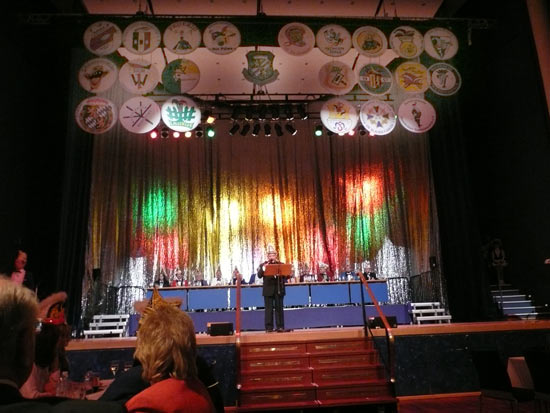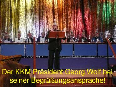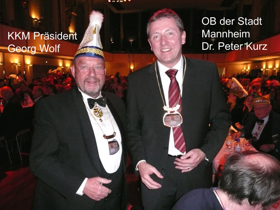 Pünktlich um 14.00 Uhr hat die Karneval-Kommission Mannheim ihre Prunksitzung im Musensaal begonnen. Die federnführenden Vereine waren durch ihre Präsidenten auf der Bühne vertreten. Der KKM-Präsident Georg Wolf begrüßte alle Narren im Musensaal herzlich. Auch viele hohe fasnachtliche Persönlichkeiten stellvertretend für alle nenne ich den Präsident der Vereinigung Badisch-Pfälzischer Karnevalvereine, Günter Hauck! Es wurde getanzt, Musik gemacht, gesungen und auch Büttenreden wurden dargeboten. Der "Pilwe" Präsident Rolf Braun leitete die Prunksitzung hervorragend am Präsidenten- Elferrarts-Tisch. Es war eine tolle Werbeveranstaltung für die Kurpfälzer Fasnacht! So kann die fünfte Jahreszeit weiter gehen!