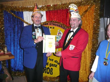 Die Stroseridder hatten zum Ochsenkopfessen gerufen und die Narren sind gekommen. Michael Seitz Präsident der Stroseridder begrüßte die närrischen Abordnungen. Es gab den überaus leckeren Ochsenkopfteller mit Beilagen. Ehrungen wurden genauso vorgenommen, wie Büttenreden von der Lupienenstraße sowie Hans Schick von den Ehrenämtern. Der Tanz der reifen Damen (Sex Bomb) war eine Augenweide. Auch das Mannheimer Stadtprinzenpaar ließ es sich nicht nehmen bei den Stroseridder ihren gemeinsamen Fasnachtshit darzubieten!