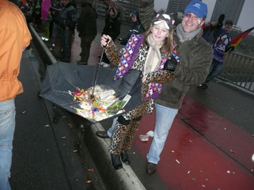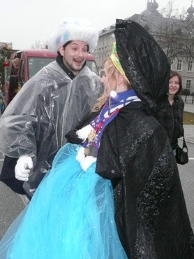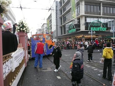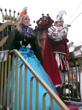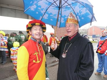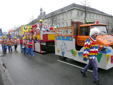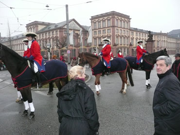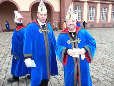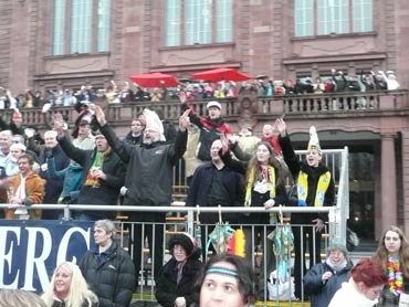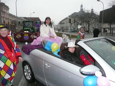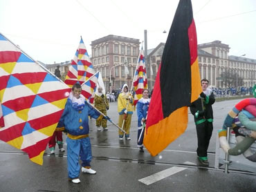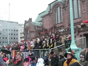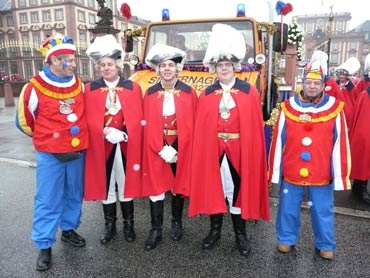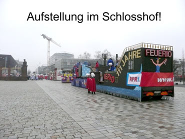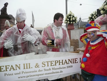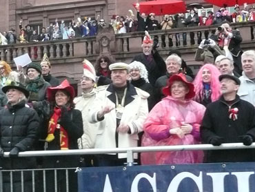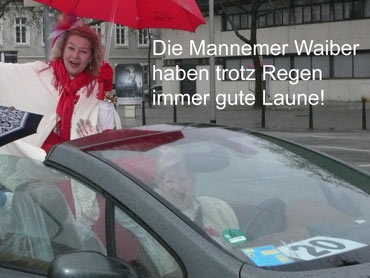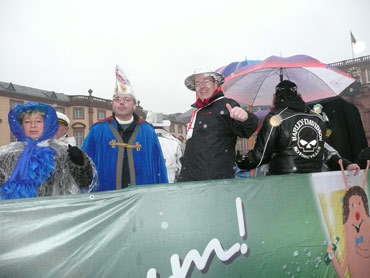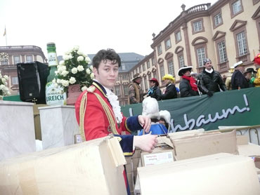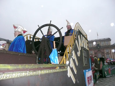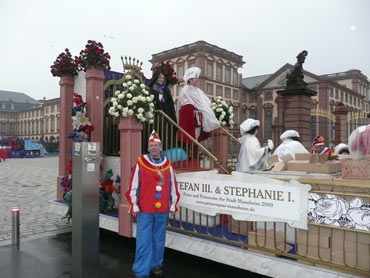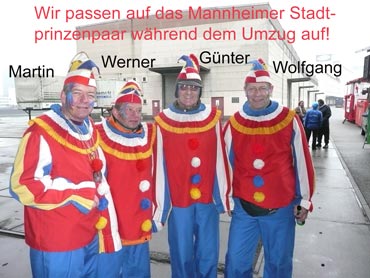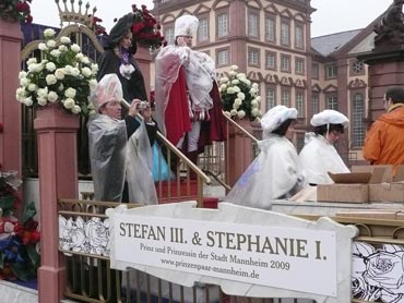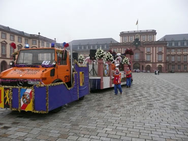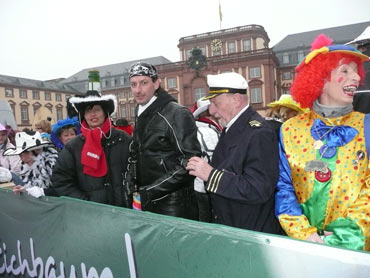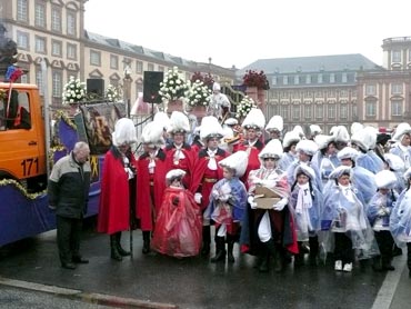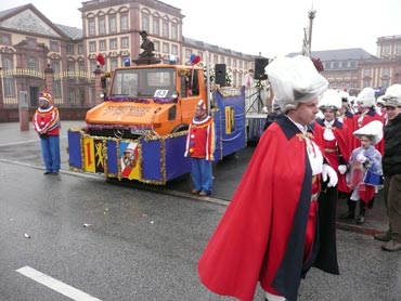 Die kurpfälzer Narren trotzen dem Nieselregen und wollten diesen mit Frohsinn vertreiben! Die über 2500 Teilnehmer mit den 93 Zugnummern reihten sich im Hafengebiet auf und stärkten sich mit warmer Suppe und Wurstbrötchen. Dann ging es langsam Richtung N1, denn der 57. gemeinsame Fasnachtszug sollte pünktlich um 14.11 Uhr beginnen. Das Mannheimer Stadtprinzenpaar Stephanie I. und Stefan III. standen mit dem KKM-Wagen im Ehrenhof vom Schloss und beobachteten die vorbeiziehenden Wagen und begrüßten diese mit Ahoirufen! Dann reihte sich der Stadtprinzenwagen mit der Nummer 63 in den Zug ein und schon wurde kräftig ab N1 die leckeren Gutsel in das närrische Volk geworfen. Ahoirufe war der Dank der Narren! Der Rappsong wurde auch zwei Mal beim Weg um den Wasserturm vom Prinzenpaar gesungen und alle waren aus dem Häuschen! Jubel, Trubel, Heiterkeit und Frohsinn auf der Gass! Die gut 220.000 Besucher des Fasnachtszuges waren gut drauf, obwohl die Sonne beim Mannheimer-Umzug ausnahmsweise mal nicht vom Himmel gestrahlt hatte!