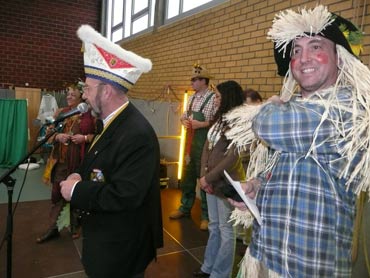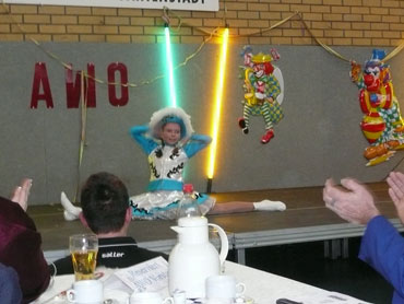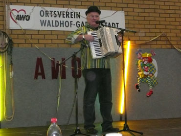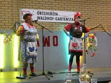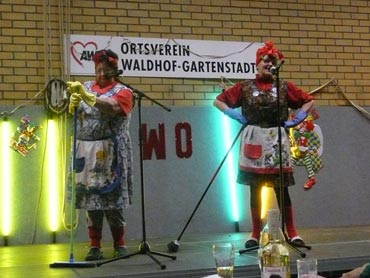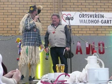 Der 8. Fasnachtskaffeenachmittag bei der AWO-Waldhof-Gartenstadt-Luzenberg war wieder einmal eine hervorragende Veranstaltung der Extraklasse! Stefan Höß als Vogelscheuche verkleidet mit seinem Team haben ganze Arbeit geleistet. Rasant von Anfang an mit vielen Höhenpunkten und viele fasnachtliche Persönlichkeiten und die es einmal werden wollen kamen in das Kulturhaus Waldhof. Sie tanzten, steppten, sangen Lieder und die Bütt war bestens besetzt. Die Lieblichkeit vom CCW die Prinzessin Sabrina II. von den Lackexperten strahlte und man sah ihr an, dass es ein Heimspiel war! Das närrische Publikum war begeistern von dem "Närrischen Feuerwerk" auf der Bühne. Die Tanzmariechen Jana Grahm und Samantha Höß zeigten ihr großes Talent im Tanz. Hans Schmitt und Peter Schick sowie Musiprofessor Werner Beidinger brachten den Saal zum Beben. Auch der Nachwuchsfasnachter Sascha Knapp bekam kräftigen Beifall. Kräftig gelacht wurde auch über die Dialoge der Putzfrauen Sigi Naber & Elsbeth Steidle, es war einfach scheee! Dann kam noch das Mannheimer Stadtprinzenpaar Prinzessin Jessica I. und Prinz Dirk I. mit Gefolge in die voll besetzte Turnhalle im Kulturhaus. Nach deren Motto tanzte Dirk I. einen flotten Beatfox auf der Bühne zur Freude aller.