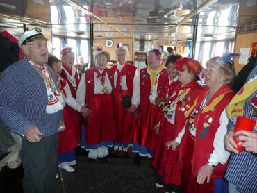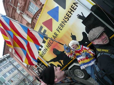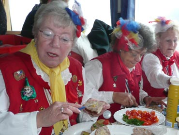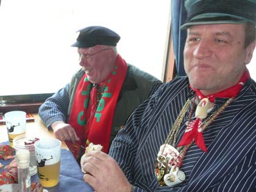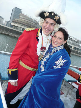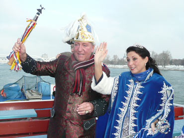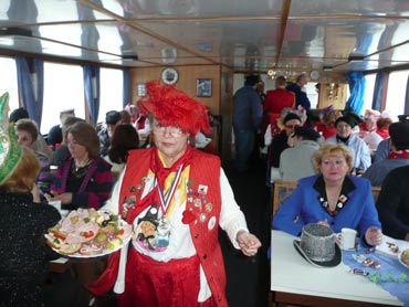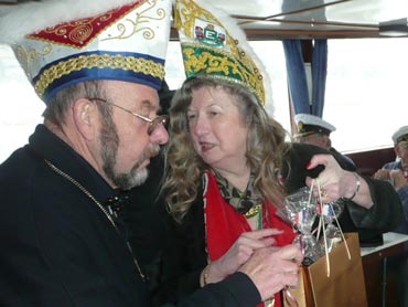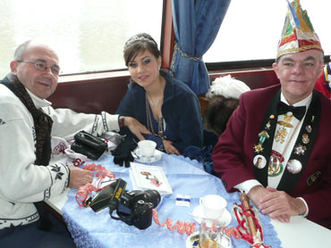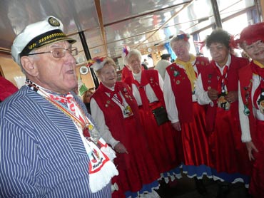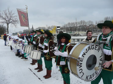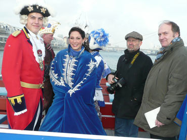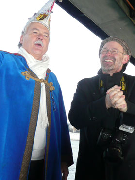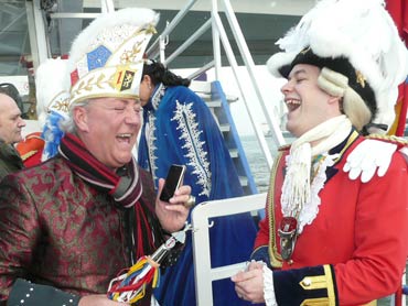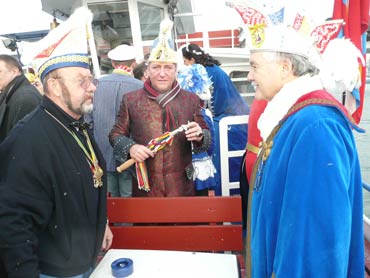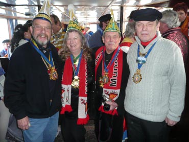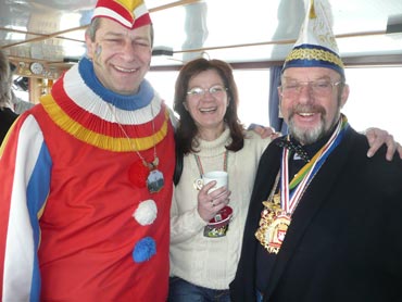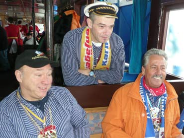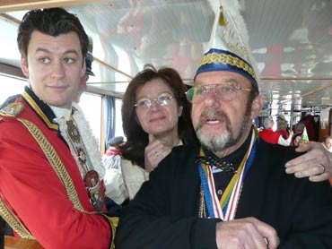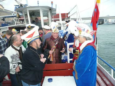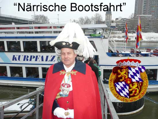 Pünktlich um 9.33 Uhr legt das 230 PS starke Schiff "MS Kurpfalz" ab zu einer närrischen Bootsfahrt auf Neckar und Rhein. Der KKM-Präsident Georg Wolf begrüßte alle Narren während die "Mannemer Waiber" Wurstbrote liebevoll belegten. Das Mannheimer Stadtprinzenpaar Jessica I. und Dirk I. fühlten sich trotz frostiger Außentemperaturen sichtlich wohl auf dem närrischen Schiff. Nach zwei Stunden Fahrt ging es zuerst ans Land und dann durch die Planken. Über den Martplatz auf den RNF-Truck und dann zum Wasserturm. Dort angekommen durften die Narren bei Sonnenschein Riesenrad fahren. Das war ein guter Auftakt für den Fasnachtzug am Sonntag in Ludwigshafen!