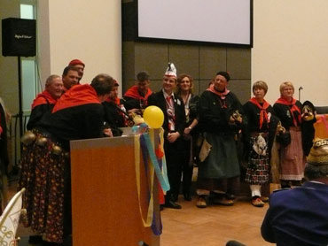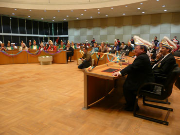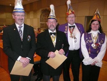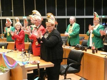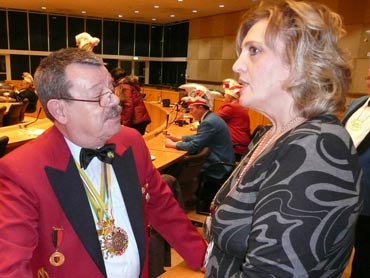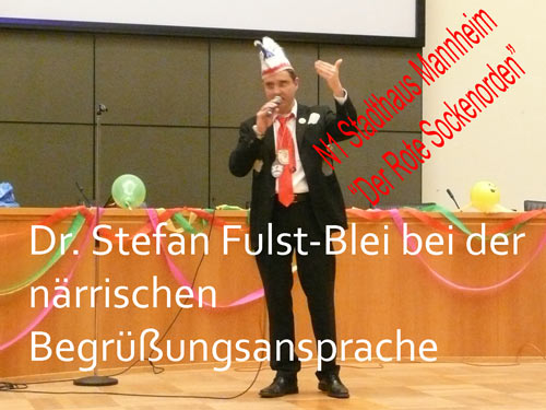 Die "Roten Socken" von Mannheim haben zum 6. Ordensfest eingeladen. Im N1 Stadthaus trafen sich die närrischen Abordnungen der Fasnachtsvereine. Der SPD- Fraktionsvorsitzender Dr. Stefan Fulst-Blei begrüßte die Narren im Sitzungssaal. Der KKM-Präsident Georg Wolf und gleichzeitig Oberfasnachter der Region sprach Grußworte am Rednerpult. Auch die anderen Präsidenten und Lieblichkeiten kamen zu Wort und tauschten ihre Orden aus und bekamen den "Rote Sockenorden" (Original Handarbeit) von den SPD-Narren. An dieser Stelle ein hohes Lob an Stadträtin Andrea Safferling für die Planung vom SPD-Ordensfest. Ebenso an die Helfer, wie die Familie Höß sen. und an das Technikteam! Das Mannheimer Stadtprinzenpaar Prinzessin Jessica I. und Prinz Dirk I. ließen es sich nicht nehmen ihre Aufwartung zu machen. Das närrische Volk im Sitzungssaal war begeistert vom hohen Besuch. Zwei Tanzmariechen Jana Gahm und Samantha Höß tanzten und zeigten ihr großes Können. Klasse Abend bei der (närrischen) Mannheimer SPD im Stadthaus N1 und wir freuen uns alle auf das 7. Ordensfest im nächsten Jahr!