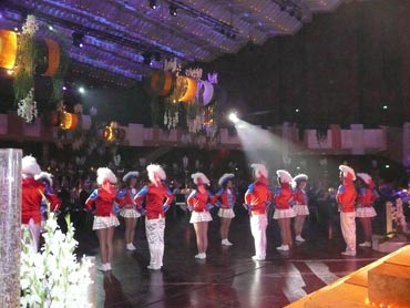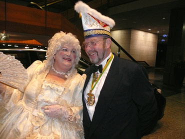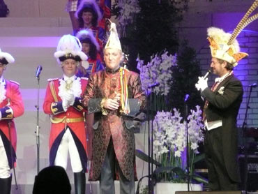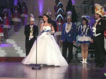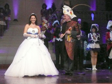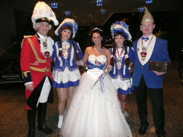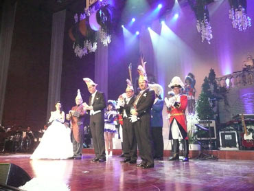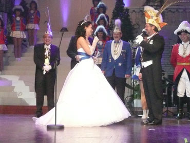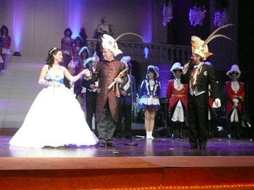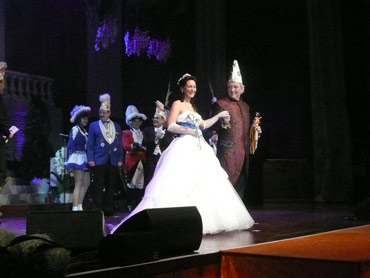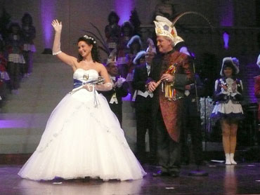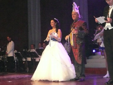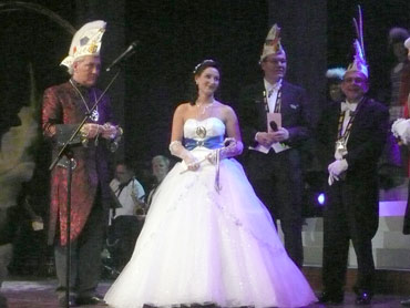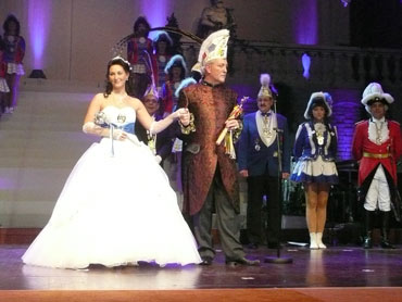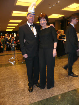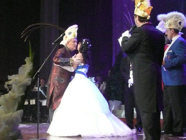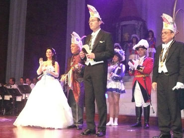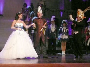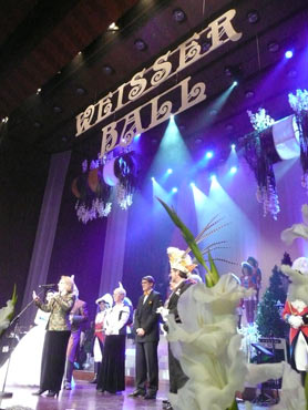 Festlich war der Mozartsaal geschmückt und die Tische mit Blumen und Kerzen dekoriert. Feuerio-Präsident Bodo Tschierschke eröffnete den "Weissen Ball" in der 112. Feuerio-Kampagne. Dirk I. vom Feurio betrat Bühne und wurde in sein Amt als Stadtprinzen feierlich eingeführt. Grußworte von Bund-, Land- und Stadvertreter wurden gesprochen. Dann kam der Moment, als Jessica I. von den Pilwe mit einem zauberhaften weißen Kleid die Treppe herunter ging. Sie hat nun ihren Prinzen zum Anlehnen und wird nun gemeinsam das wichtige närrische Amt führen! Klasse Musikbands spielten im Mozartsaal und das Tanzbein wurde geschwungen. Andere speisten bei musikalischer Unterhaltung im Foyer leckere Gerichte. Nach Mitternacht spielte Joachim Schäfer mit seinen Freunden im Foyer fetzige Lieder bis in den Morgengrauen.