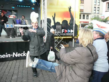 Pünktlich um 11.11 Uhr wurde die "Fünfte Jahreszeit" auf dem Marktplatz eröffnet! Viele fasnachtliche und politische Persönlichkeiten gaben sich die Ehre und wollten sich dieses Spektakel nicht entgehen lassen. Auf dem RNF-Truck standen die Narren der "Kurpfälzer Fasnacht" und schunkelten die 5te Jahreszeit ein! Der KKM-Präsident Georg Wolf eröffnete pünktlich um 11.11 Uhr die Kampagne! Auch die Lieblichkeit Manuele I. und gleichzeitig die zukünftige Stadtprinzessin von Mannheim schunkelte noch in zivil mit! Ab 2011 gibt es, laut Georg Wolf, wieder eine gemeinsame Fasnachtseröffnung von "hüwwe un drüwwe"! So kann es weiter gehen! Drei mal Ahoi auf die "Kurpfälzer Fasnacht!