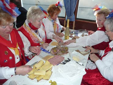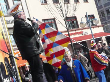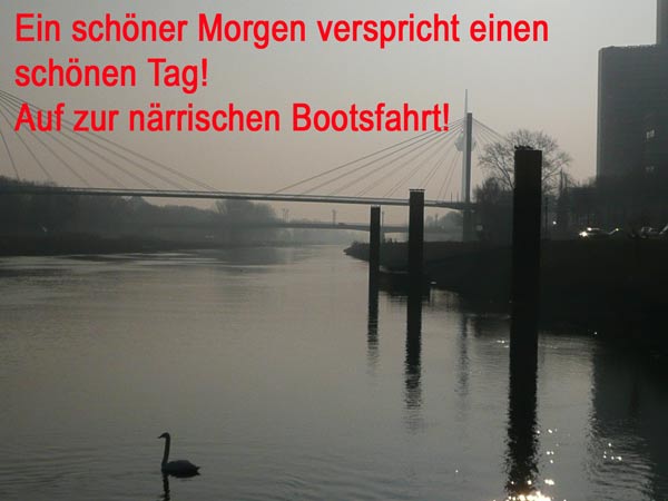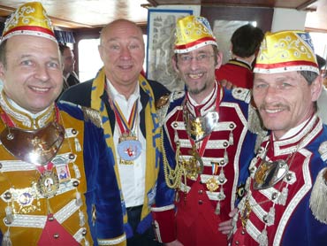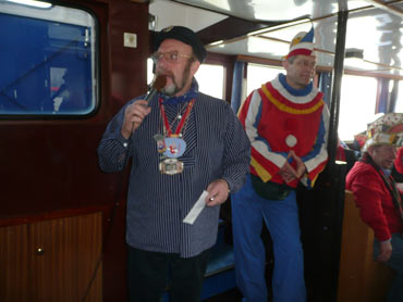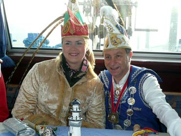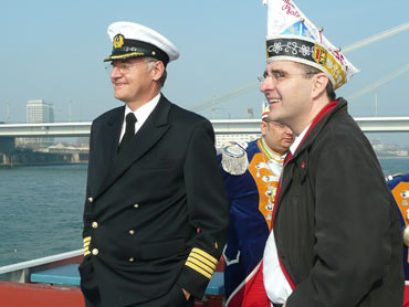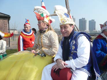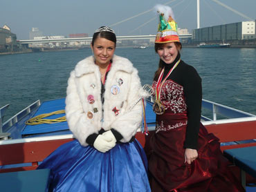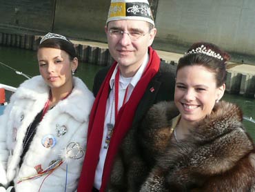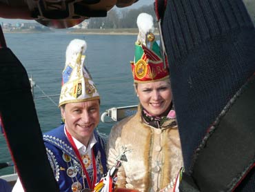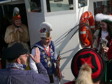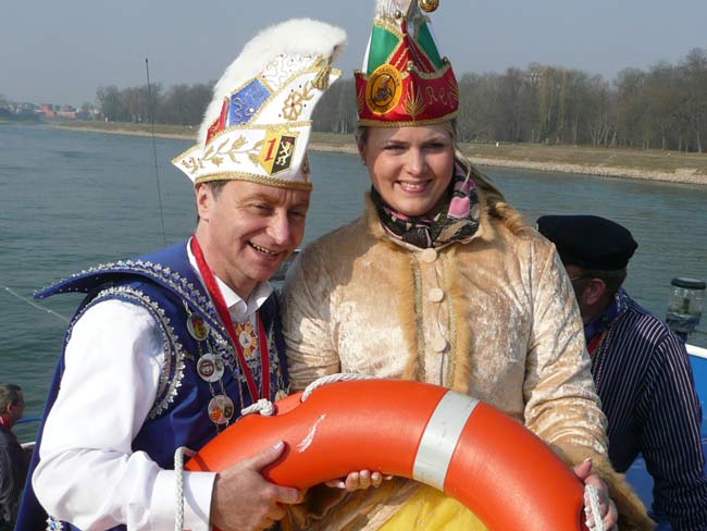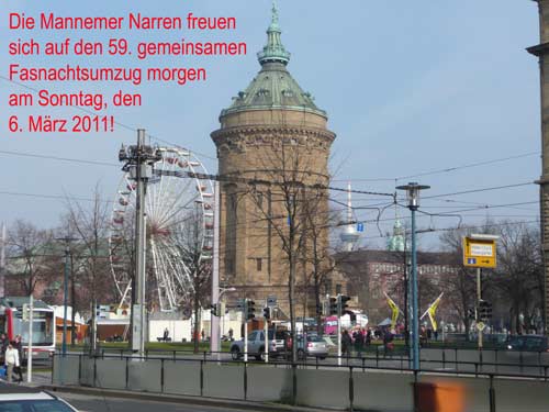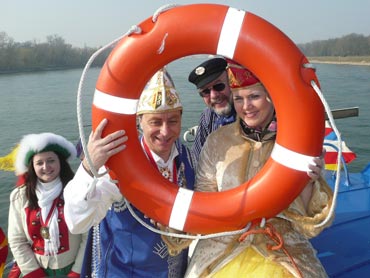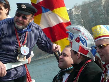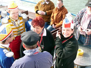 Die Karnevalkommission lädt die Narren und das Mannheimer Stadtprinzenpaar zur traditionellen "Närrische Bootsfahrt" ein. Die MS Kurpfalz legte bei Sonnenschein gegen 9.33 Uhr ab und die Mannemer Waiber versorgten die hungrigen Narrenschar mit belegten Broten. KKM-Präsident Georg Wolf begrüßte alle herzlich auf dem Juxdampfer. Es wurde gesungen und gelacht und nicht an die Arbeit gedacht! Nach dem Anlegen machten sich das Mannheimer Prinzenpaar im offenen Cabrio mit Gefolge Richtung Marktplatz auf. Dort wurde auf dem RNF-Truck geschunkelt und Sprüche gekloppt. Danach ging es weiter zum Wasserturm von den Karlstern Hexen mit viel Tam Tam bekleidet. Dort angekommen konnte man mit dem Riesenrad Mannem von oben sehen. War wieder eine Werbung für die Fasnacht von Mannheim und der Kurpfalz!