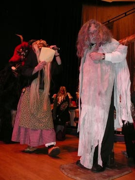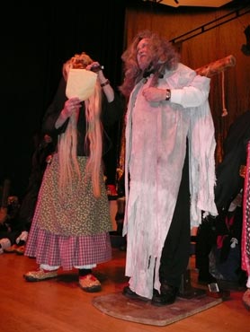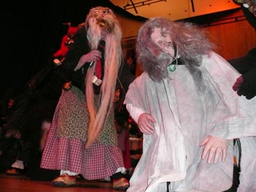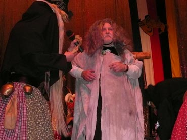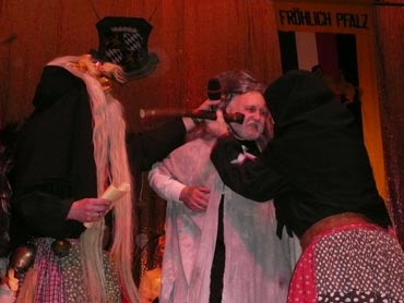 Alle hörten, wie KKM-Vize Reinhard Buske gelobte, ewig bei der Fasnacht zu bleiben! Anbei ein paar überzeugende Bilder von der Hexenprozedur auf der Bühne vom Musensaal!