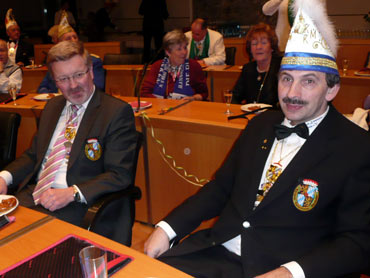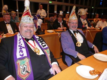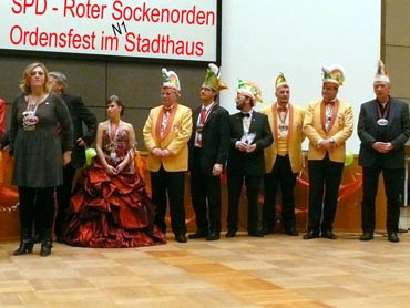 Im N1 Stadthaus trafen sich zum 10ten Mal die närrischen Abordnungen der Fasnachtsvereine. Der SPD- Fraktionsvorsitzender Dr. Stefan Fulst-Blei begrüßte die Narren im Sitzungssaal. Der KKM-Präsident Georg Wolf und gleichzeitig Oberfasnachter der Region sprach Grußworte am Rednerpult. Auch die anderen Präsidenten und Lieblichkeiten tauschten Worte und Orden aus und bekamen den begehrten "Rote Sockenorden" (Original Handarbeit) von den SPD-Narren. An dieser Stelle ein hohes Lob an Stadträtin Andrea Safferling für die Planung vom SPD-Ordensfest. Ebenso an die Helfer, wie die Familie Höß sen. und an das Technikteam! Das Mannheimer Stadtprinzenpaar Prinzessin Manuela I. Prinzessin der Rheinauer Sandhase der Stadt Mannheim und der Kurpfalz sowie Prinz Oliver I. von Rat und Tat Prinz der Stadt Mannheim des Grossen Feuerio und der Kurpfalz ließen es sich nicht nehmen ihre Aufwartung zu machen. Das närrische Volk im Sitzungssaal war begeistert vom hohen Besuch. Samantha Höß tanzte auf höchstem Niveau und zeigte dabei ihr Talent und ihr großes Können. Klasse Abend bei der (närrischen) Mannheimer SPD im Stadthaus N1 und wir freuen uns alle auf das 11. Ordensfest im nächsten Jahr!