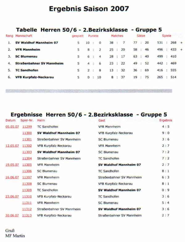 SVW Herren 50 gegen Straßenbahner SV Mannheim