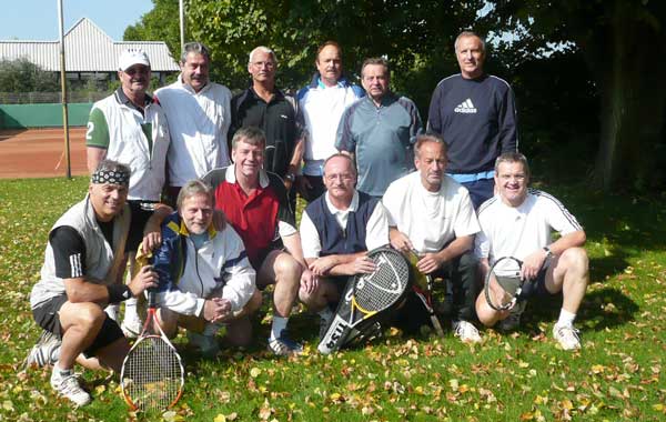 Die Herren 50 Mannschaft machte ein internes Turnier an einem sonnigen Herbstnachmittag! Bernd Germann entwickelte ein geniales Spielprogramm und erklärte dieses am Anfang. Auf drei Plätzen kämpften 12 Spieler um den Tagessieg. Auch leckeren Kuchen von liebenden Händen zubereitet schmeckte uns allen in der Kaffeepause. Gegen 18.00 Uhr stand dann der Tagessieger fest. Günter Hoffmann jun. war der beste Spieler an diesem Tag und hatte die meisten Spiele gewonnen! Gratulation zu dieser Leistung! Es gab dann nach dem gemeinsamen Abendessen die Ehrung mit Präsenten für die besten sechs Spieler! Auch unsere Clubwirtin Frau Heise bekam einen schönen Blumengruß von den Herren 50 überreicht. Anschließend wurde dann mit Livemusik das Tanzbein geschwungen! Interessante Gespräche mit der Mannschaft und den Gästen rundete den schönen Abend ab!