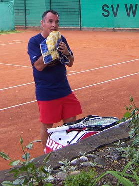 Käfertal kam zu uns, und wollte unbedingt einen Sieg heimfahren. Die Mannschaft vom SV-Waldhof war bei ihrem ersten Medenspiel gut vorbereitet. Wenn man gut vorbereitet ist, dann kann man auch etwas bewegen. Das zeigte sich nach der Einzelrunde deutlich! 4:2 setzten sich die Waldhöfer ab und die Kuchenpause wurde genutz, um die Doppel richtig zu platzieren. Ein Doppelsieg mußte her und das gelang mit Sam und G. Hoffmann. Eine geschlossene Mannschaftsleistung und der Sieg mit 5:4 war unser! Gratulation an den fairen Gegener aus Käfertal und an die siegreiche Mannschaft vom SVW Herren 50!