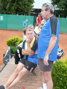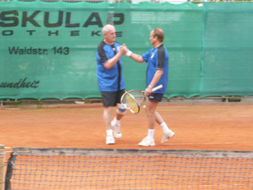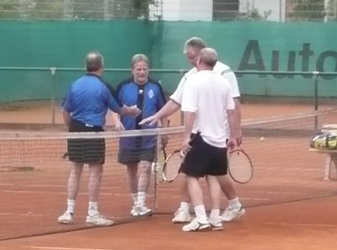 Wir begrüßten unseren Gegner vom Lindenhof herzlich. Das Wetter zeigte sich nicht von der besten Seite und so spielten wir die Einzel alle auf einmal. Mit einem 4:2 gingen wir in die Kaffeepause. Nach kurzer Beratung waren die Doppelpaarungen gestellt und der SVW war an diesem Spieltag nicht zu schlagen. Die drei Doppelspiele gingen auch an die Heimmannschaft und somit hatten wir 7:2 gewonnen! Ungeschlagen sind wir nicht nur Gruppenerster geworden, sondern auch in die 2. BezirksLIGA aufgestiegen! Die Herren 50 sind nun alle zwei Jahre 2005, 2007 und nun 2009 aufgestiegen! Wenn dies so weiter geht sind wir bald in der Bundesliga!!! Wir wollen aber erst disen Aufstieg gemeinsam feiern und dann an die Zukunft denken. Die beiden Mannschaftsführer sprachen ihre Grußworte und der Abend ging bei guten und freundschaftlichen Gesprächen zu Ende!