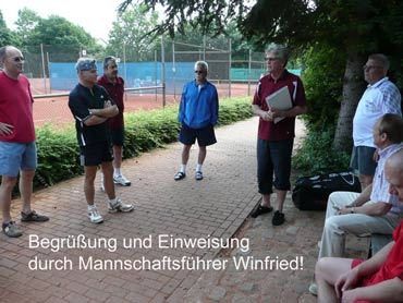 Gute vorbereitet für die neue Tennissaison sind wir zum Tennisverein TC Plankstadt gefahren. Wir haben gewusst, dass es starke Gegner sein werden. Leider sind wir nicht in bester Spielstärke angetreten. Wir sind von dem Mannschaftsführer Winfried und seine Spieler freundlich empfangen worden und nach der Einweisung ging es schon in die erste Runde. 1:2 und in der zweiten Runde stand es schon 2:4 gegen SV Waldhof Mannheim 07! Sam und Peter erkämpften die Punkte, doch mehr war leider nicht zu holen. Wir hatten zwar heimische Unterstützung durch unseren 1. Vorsitzenden Günter Hoffmann und Gattin sowie eigene Spielerfrauen als moralische und fachkundige Hilfe. Aber, der Erfolg für die Mannschaft blieb aus. Dann kam die Regen- und Gewitterpause die dazu führte, dass die Doppel erst am Sonntag gespielt wurden. Es gab noch am Samstag ein leckeres Mannschaftsessen und man grübelte über die Doppelpaarungen.