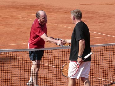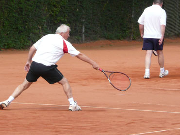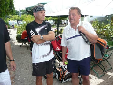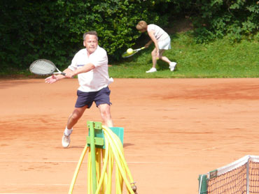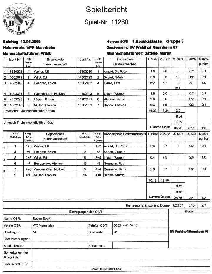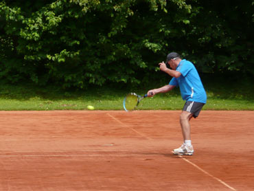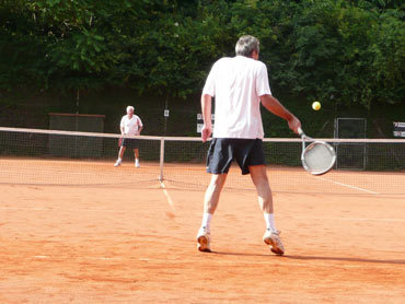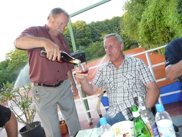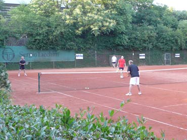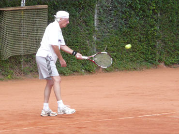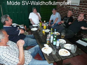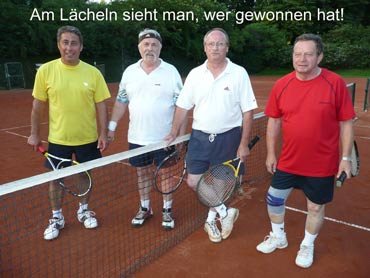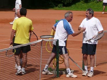 Wir sind zum 3. Mal beim VFR-Mannheim zu einem Punktspiel angereist! Herzlich war dann auch die Begrüßung von dem Mannschaftsführer Eugen und seinen Spielern! Pünktlich um 14.00 Uhr wurden die Bälle über die Netze geschlagen und es kam, wie es aus Sicht der SV-Waldhofmannschaft geplant war. Nach den Einzeln lagen wir schon uneinholbar mit 5:1 in Führung!! Ein hohes Lob an die Mannschaft! Diese Leistung wurde auch deswegen gebracht, weil viele SVW-Fan`s mit dabei waren und uns lautstark anfeuerten. Es gab dann zur Stärkung heißen Kaffee und schmackhaften, selbstgebackenen Kuchen! Die Doppelpaarungen wurden von den Mannschaftsführer festgelegt und auch hier ging es zur Sache! Unser erstes Doppel benötigte 9 Matchbälle zum Sieg! Auch das dritte Doppel mit Bernd und dem MF waren wieder eine sichere Bank für den SVW! So konnten wir mit 2:1 aus den Doppelspielen Punkte sammeln. Damit stand das Endergebnis mit 7:2 für den SV-Waldhof fest! Leckere Steaks und Bratwürste gab es nach dem Duschen und auch der Durst wurde erfolgreich gelöscht. Wir gratulierten noch dem VFR-Mannschaftsführer Eugen sehr herzlich zu seinem Geburtstag und wünschten ihm alles Gute! Gegen 22.30 Uhr fuhren wir dann müde aber mit einem Sieg in der Tasche nach Hause!