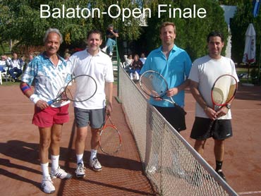 Super Tennisspiele mit sehr vielen Höhenpunkten in allen gespielten Doppel! Es gab keine Verlierer, sondern nur Gewinner! Aus fern und nah kamen alle zu dem internationalem Tennis-Doppelturnier nach Zamárdi direkt am Balaton gelegen. Die Turnierleitung hatte 50 Doppelpaare zu stellen und auszulosen. Die Spieler gaben ihr Bestes und kämpften hart. Es hat sich gelohnt um jeden Ball zu rennen, denn um so besser schmeckte dann das leckere mit Liebe gekochte Hirschgulasch von Arpi und seinem Frauenteam! Viel wurde gesprochen und Freundschaften bestätigt und gefestigt. Am nächsten Tag wurde die Finals gespielt und das gleiche Paar von 2005 wurde wieder internationaler Balatontennis-Winner! Istvan und Thomas haben sich erfolgreich gegen sehr starke Sieler durchgesetzt und gewannen ihr Endspiel "SIMA"!!! Hier sind die Bilder vom Tennisplatz in Zamárdi.