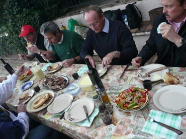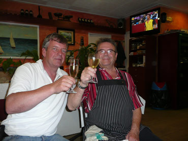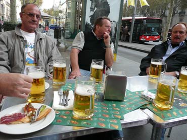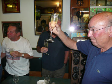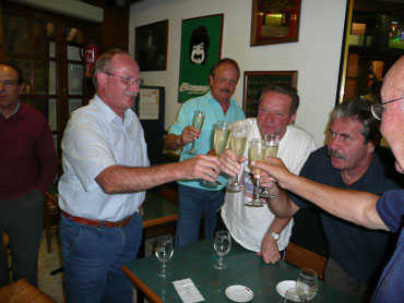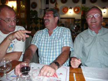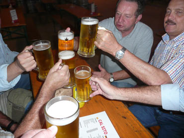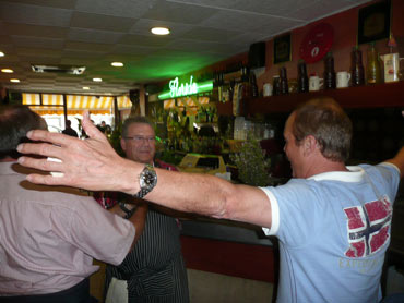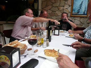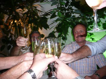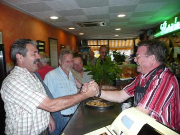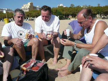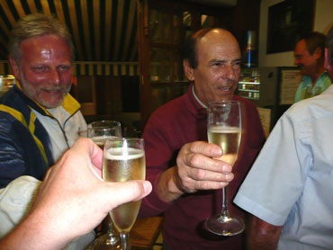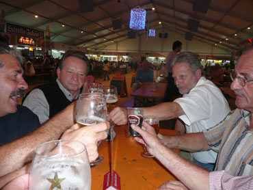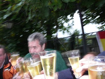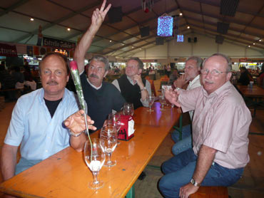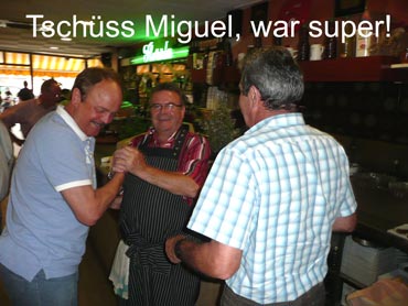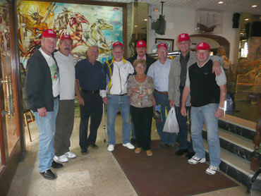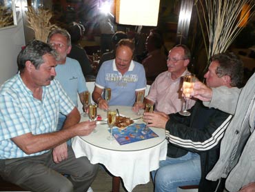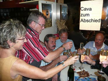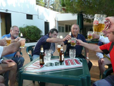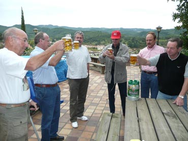 Der Flieger ging von Baden-Baden Airport nach Girona in kanpp 1 1/2 Stunden Flugzeit und nach einer guten Landung holte uns Gregori vom Flughafen ab. Die Begrüßung war sehr herzlich und wir alle freuten uns Gregori zu sehen. Nach einem Begrüßungsbier zogen wir in unsere schönen Doppelzimmer ein. Danach war es einfach nur schön, egal ob wir im Oktoberfestzelt waren, an den verschiedenen Theken unseren Mann standen, am Strand lagen und gebadet haben, spazieren gingen, auf der Finca Lammfleisch (mit viel Riojawein) gegessen haben, Tennis gespielt haben, Billardkugel gestoßen haben oder einfach nur diskutiert haben etc., es hatte jedem Freude gebracht! Man konnte seinen Alltag vergessen und gleichzeitig seinen Aku für neue Aufgaben aufladen! An dieser Stelle möchten wir uns alle sehr herzlich bei Gregori für seine überaus große Gastfreundschaft und Herzlichkeit bedanken!