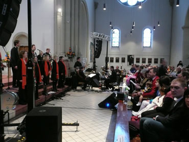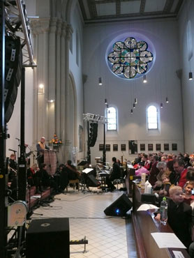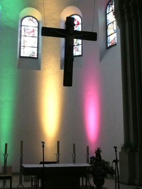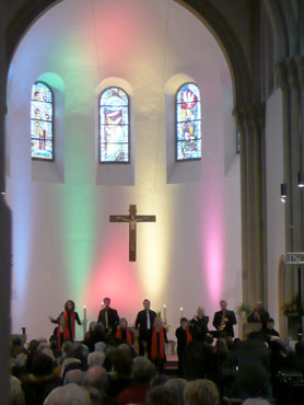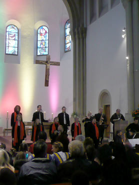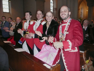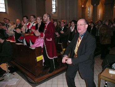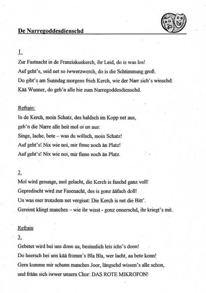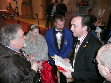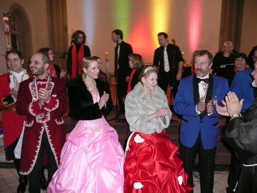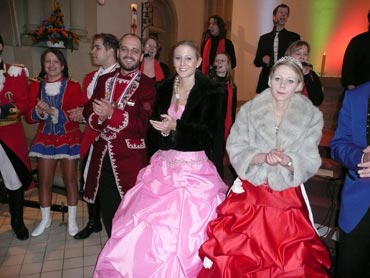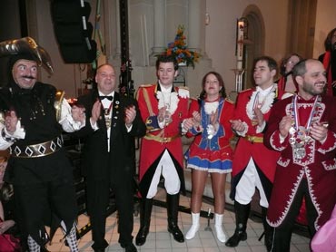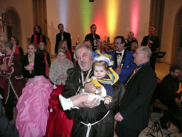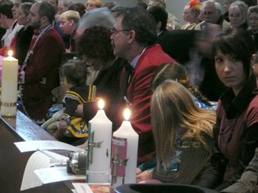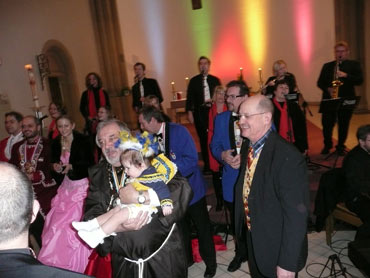 In der vollbesetzten St. Franziskus-Kirche auf dem Waldhof wurde wieder der "Närrische Gottesdienst" gefeiert! Dieter Augstein begrüßte die Narren in der Kirche und die Gospelgruppe "Das rote Mikrophon" zeigte gleich was sie können. Es wurde kräftig geklatscht auch bei den meisterlichen Vorträgen von Jürgen Günther als Till Eulenspiegel (Löwenjäger) und Prof. Dr. Hans-Peter Schwöbel. Der Pfarrer Walter Wettach war auch wieder dabei und sprach wohl gereimte Worte. Es gab auch zum ersten Mal eine Taufe während dem närrischem Gottesdienst! Das Mannheimer Stadtprinzenpaar Jennifer I. und Martin I., die CCW-Prinzessin Stefanie I. sowie viele närrische Persönlichkeiten waren zum Gottesdienst gekommen. Bei manchen sah man die ersten Spuren von der kurzen und daher anstrengenden Kampagne an. Doch es geht weiter mit der "Fünften Jahreszeit" und wir freuen uns schon jetzt in einem Jahr den 14. Närrische Gottesdienst in der St. Franziskus-Kirche zu feiern.