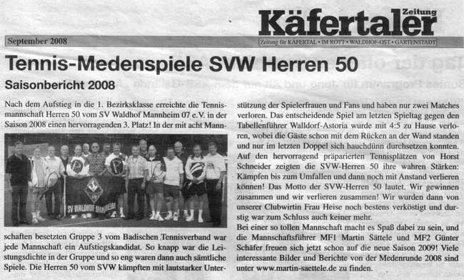SVW Herren 50 gegen Tennisgemeinschaft Käfertaler Sportvereine e.V. am 28.06.2008