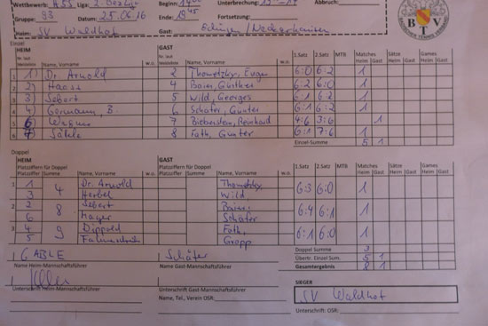 Unser MF Fritz begrüßte die Gäste aus Edingen-Neckarhausen freundlich. Konzentriert begangen die Einzel und erfolgreich mit 5:1 gingen wir aus der ersten Runde. Spielerisch waren wir klar besser aber wir bekamen nichts geschenkt. In den Doppel kamen unsere Spieler welche nicht im Einzel spielten zu ihrem Einsatz. Hunrig nach Punkten gingen die ausgeruhten SVW-Spieler an Werk und brachten weitere drei Siege. Das Ergebnis ging damit klar mit 8:1 an die Herren 55 vom SVW. Die Gäste aus Edingen-Neckarhausen waren sehr fair und wir würden uns freunen, wenn wir 2017 wieder gegen sie spielen könnten.