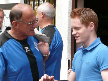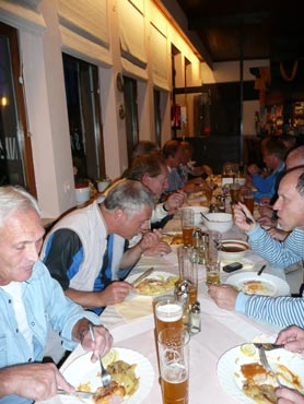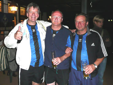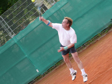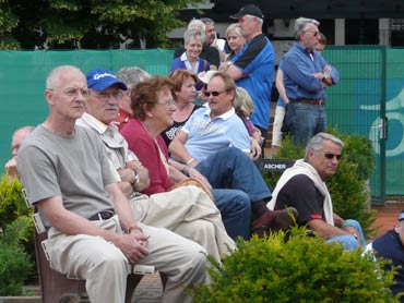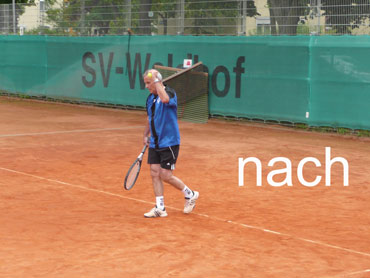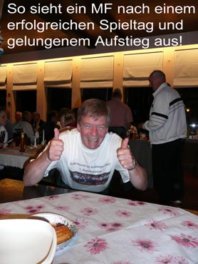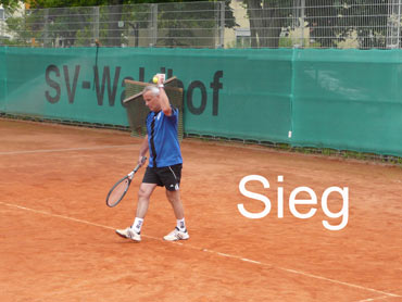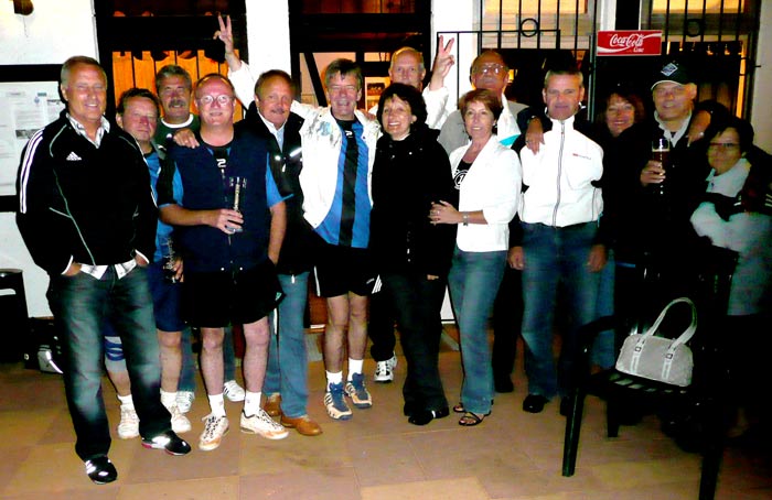 Der Tabellenführer TC Ladenburg e.V. kam motiviert zum SVW angereist. Wir begrüßten den Favoriten aus Ladenburg herzlich und machten gleich ein gemeinsames Gruppenfoto. Wir hatten großen Respekt vom Gegner und Tabellenführer. Gleichwohl haben wir uns mental und körperlich gut vorbereitet. Es galt Paroli zu bieten, denn die Spieler vom TC haben durchweg eine bessere Leistungsklasse als unsere Spieler. Das spornt um so mehr an um alles zu geben und bis zum Umfallen zu kämpfen. Gut eingestellt gingen wir auf die Plätze und begannen die Einzelrunde. Sam hat gekämpft und nach unglaublichen 3,5 Stunden einen Sieg erzwungen. Auch die anderen Spieler vom SVW gaben ihr bestes Tennis und so stand es 3:3 nach den Einzeln. Angefeuert wurden die beiden Mannschaften von den Zuschauern. Besonders die SVW-Herren 50 wurden frenetisch von den Spielerfrauen (Augensterne) motiviert! Nach der Kaffee- und Kuchenpausen mußten die Doppelpaarungen gestellt werden. Und dann ging es wieder zur Sache. Sollten wir zwei Doppel gewinnen haben wir nicht nur gegen TC Ladenburg gewonnen, sondern auch den Aufstieg in die 2. BezirksLIGA!!!! So motiviert wurde am Limit gespielt und jeder Ballwechsel heiß umkämpft. Die Spieler kamen gegen 21.30 Uhr mit der Dämmerung Probleme und wir mußten die Spiele unterbrechen. In der Zwischenzeit hatte unser erstes Doppel (Peter + Sam) klar gewonnen. Es wurde dann nach einer kurzen Pause auf den Flutlichtplätzen weiter gespielt. Jeder Spieler und die Zuschauer spürten die große Anspannung, denn es ging um Sieg und Aufstieg zugleich. Dann ist das Unglaubliche geschehen, das dritte Doppel (Paul + MF) hatten zwei Matchbälle. Gleich der erste Matchball wurde eiskalt genutzt und wir sind in die 2. BezirksLIGA aufgestiegen! Gratulation an die ganze Mannschaft für diese hervorragende Leistung! Unser bewährtes Motto lautet: Wir gewinnen zusammen und wir verlieren zusammen! Danke auch an unsere Clubwirtin Frau Heise, weil sie erst spät am Abend das Mannschaftsessen auftischen konnte! Die beiden Mannschaftsführer Uwe und Martin sprachen ihre Grußworte und erst gegen Mitternacht war der Spieltag zu Ende. Solche interessante Medenspiele erlebt man nicht allzu oft!