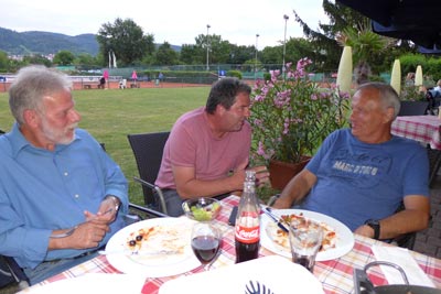 Die Anreise war kurz bei schönem Wetter, windig zwar aber gut gelaunt sind wir auf die schöne Tennisanlage vom TC Leutershausen reinmarschiert. Die Berüßung war herzlich von der Mannschaft und vom MF Achim Königer. Keiner konnte beim letzten Spiel auf- bzw. absteigen. So locker konnten wir aufspielen. Locker war aber kein einziges Spiel, da um jeden Ball auf beiden Seiten gekämpft wurde. 2:4 ging es aus den Einzelspielen und es sah für einen klaren Sieg für den TCL aus. Aber da kam unsere Doppelstärke zum Tragen und im letzten Doppel haben wir letzt endlich unser Spiel hergeben müssen. Verloren ... ok, aber mit Achtung haben wir unsere geschlossenes Maschaftsspiel gezeigt. Wir gewinnen zusammen und verlieren zusammen! So ist user Motto! Die Mannschaftsführer Bernd Germann SVW und Achim Königer TCL sprachen Gruß- und Dankesworte aus. Lecker gegessen und gute Unterhaltungen rundeten den schönen Spielsamstag ab.