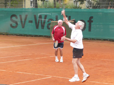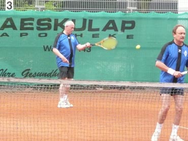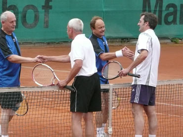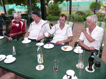 Wir begrüßten unseren Gegner vom Lindenhof herzlich. Das Wetter zeigte sich nicht von der besten Seite und so spielten wir die Einzel alle auf einmal. Mit einem 4:2 gingen wir in die Kaffeepause. Nach kurzer Beratung waren die Doppelpaarungen gestellt und der SVW war an diesem Spieltag nicht zu schlagen. Die drei Doppelspiele gingen auch an die Heimmannschaft und somit hatten wir 7:2 gewonnen! Ungeschlagen sind wir nicht nur Gruppenerster geworden, sondern auch in die 2. BezirksLIGA aufgestiegen! Die Herren 50 sind nun alle zwei Jahre 2005, 2007 und nun 2009 aufgestiegen! Wenn dies so weiter geht sind wir bald in der Bundesliga!!! Wir wollen aber erst disen Aufstieg gemeinsam feiern und dann an die Zukunft denken. Die beiden Mannschaftsführer sprachen ihre Grußworte und der Abend ging bei guten und freundschaftlichen Gesprächen zu Ende!
