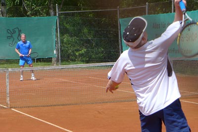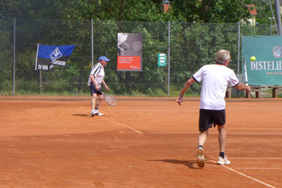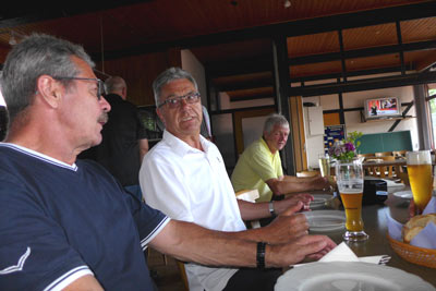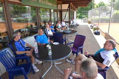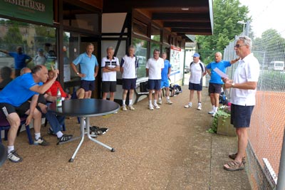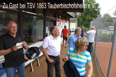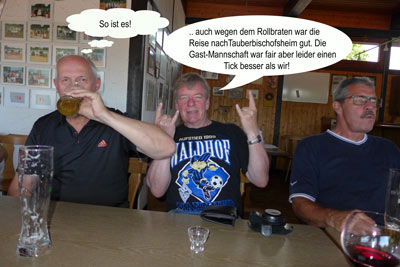 Die SVW-Mannschaft ist gut gelaunt 1,5 Stunden nach Tauberbischofsheim gefahren, um Punkte mit nach Waldhof zu nehmen. Aus diesem Vorhaben wurde leider nichts daraus. Das Endergebnis war 3:6 und es hätte aber auch anders ausgehen können. Die Spiele gingen teilweise über einen Match-Tibrake. Na ja, das Wetter war wenigstens gut und auch die Doppelpaarungen wurden von unserem MF Fritz super eingeteilt. Zwei Siege gingen daraus hervor aber es hatte leider keinen gewinnbringenden Match-Einfluss mehr. Die Mannschaften kämpften verbissen aber fair und wir alle freuten uns auf den leckeren Rollbraten mit frisch zubereiteten Salaten nach den Spielen. Es gab sogar noch nach dem Essen für jeden einen selbstgebrannten Schnaps zur Verdauung. Die Mannschaftsführer Otmar und Fritz sprachen anschließend ihre Grußworte und dann fuhren wir wieder zwar satt aber leider ohne Punkte wieder nach Hause!