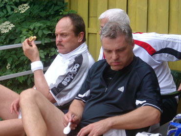 Die SVW-Herren 50 sind an diesem Samstag über sich hinaus gewachsen! Ein unerwarterter 7:2 Sieg gegen den bisher ungeschlagenen VFR-Mannheim! Ohne unsere Punkte 1 und 2 Spieler reisten wir pünktlich zum VFR-Gelände an. Nun mußten wir uns beweisen, wie gut wir ohne unsere Sperspitzen sind. Schon nach den Einzel waren wir uneinholbar 5:1 in Führung!! Einfach super, wie jeder sich ins Zeug gelegt hatte und kein Ball wurde hergeschenkt! Hut ab, bei dieser Leistung! Selbst noch zwei Doppel haben wir nach Hause gebracht. Bei dieser Freude dürfen wir hier an dieser Stelle unserem fairen und sportlichen Gegner gratulieren. Wir konnten auf dem VFR-Platz super Gegner und vor allem klasse Fan`s kennen lernen. Bei den nachfolgenden Bildern kann man die Leidenschaft des Spieltages sehen.