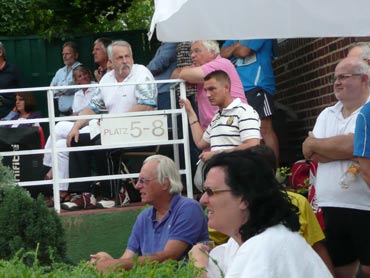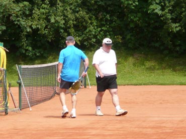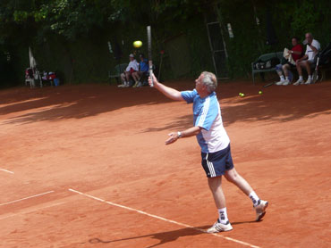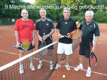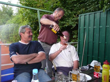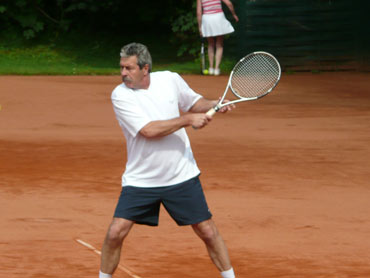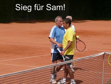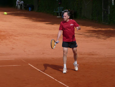 Wir sind zum 3. Mal beim VFR-Mannheim zu einem Punktspiel angereist! Herzlich war dann auch die Begrüßung von dem Mannschaftsführer Eugen und seinen Spielern! Pünktlich um 14.00 Uhr wurden die Bälle über die Netze geschlagen und es kam, wie es aus Sicht der SV-Waldhofmannschaft geplant war. Nach den Einzeln lagen wir schon uneinholbar mit 5:1 in Führung!! Ein hohes Lob an die Mannschaft! Diese Leistung wurde auch deswegen gebracht, weil viele SVW-Fan`s mit dabei waren und uns lautstark anfeuerten. Es gab dann zur Stärkung heißen Kaffee und schmackhaften, selbstgebackenen Kuchen! Die Doppelpaarungen wurden von den Mannschaftsführer festgelegt und auch hier ging es zur Sache! Unser erstes Doppel benötigte 9 Matchbälle zum Sieg! Auch das dritte Doppel mit Bernd und dem MF waren wieder eine sichere Bank für den SVW! So konnten wir mit 2:1 aus den Doppelspielen Punkte sammeln. Damit stand das Endergebnis mit 7:2 für den SV-Waldhof fest! Leckere Steaks und Bratwürste gab es nach dem Duschen und auch der Durst wurde erfolgreich gelöscht. Wir gratulierten noch dem VFR-Mannschaftsführer Eugen sehr herzlich zu seinem Geburtstag und wünschten ihm alles Gute! Gegen 22.30 Uhr fuhren wir dann müde aber mit einem Sieg in der Tasche nach Hause!